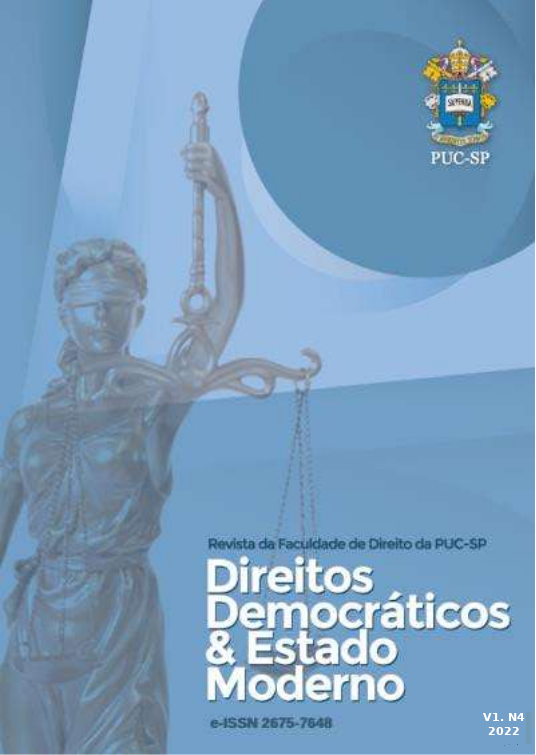 v. 3 n. 6 (2022)A revista DD&EM - Direitos Democráticos & Estado Moderno, da Faculdade de Direito da PUC-SP, sediada no Portal de Revistas da Biblioteca da Pontifícia Universidade Católica de São Paulo - PUC-SP, pretende ser um mecanismo para publicação de artigos de valor científico e humano, especialmente no que toca às discussões dos grandes temas jurídicos da atualidade, notadamente sobre o momento vivenciado pela humanidade de uma pandemia e como o direito será trabalhado no pós-pandemia.