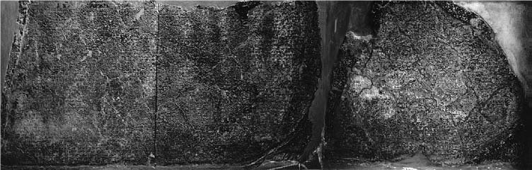 Figura 4 - Nínive, Palácio Sudoeste de Senaqueribe, Corte H, Porta a - painéis de texto do colosso sul, largura. 4,6 m. Museu Britânico, WA 118815a+b, 118821 (Russel, 1999, p. 334).