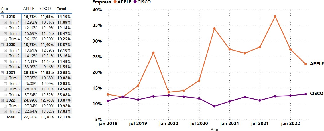 Medem, em regra geral, os retornos de capitais através de lucros ou receitas. Esses indicadores informam quanto o lucro da empresa se relaciona com outro parâmetro de comparabilidade. A regra geral para sua interpretação é que quanto maior for melhor. |