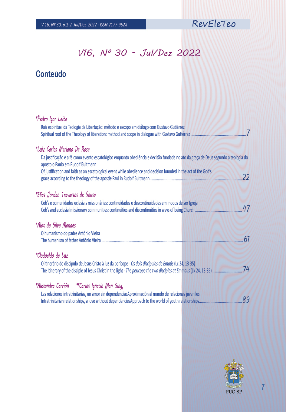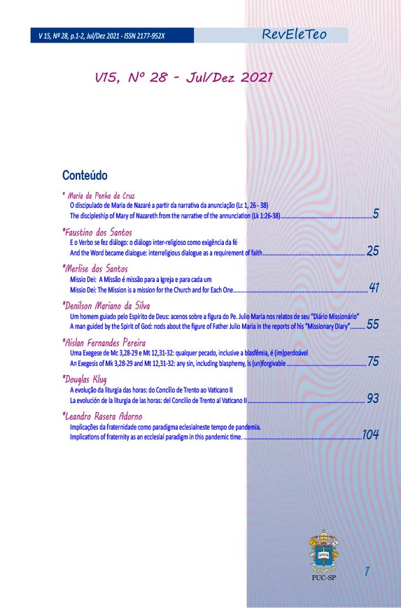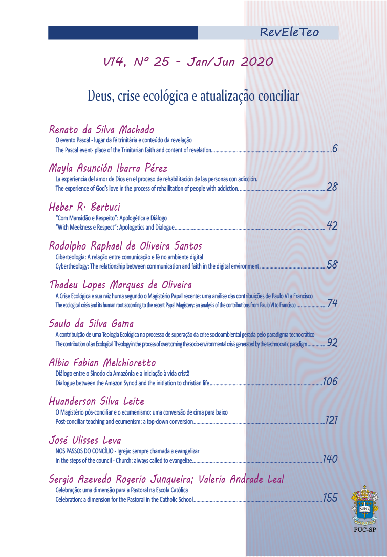 A Revista Eletrônica Espaço Teológico e os textos aqui publicados estão licenciados com uma Licença Creative Commons Attribution-NoDerivatives 4.0 International. Baseado no trabalho disponível em https://revistas.pucsp.br/reveleteo. Podem estar disponíveis autorizações adicionais às concedidas no âmbito desta licença emhttps://revistas.pucsp.br/reveleteo.