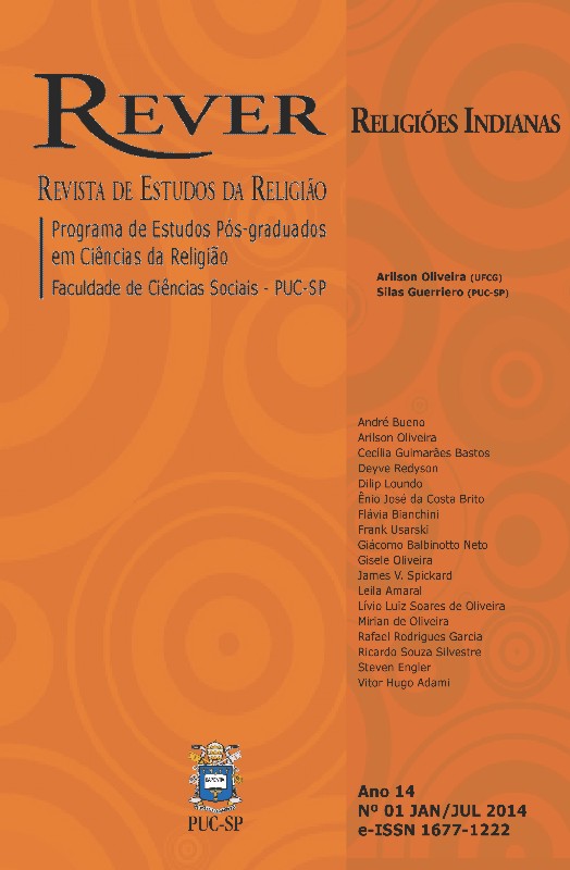 v. 14 n. 1 (2014)O presente número de REVER traz uma seção sobre as Religiões Indianas. E é bom que se frise o plural, pois essa Índia, rica e exótica, é matriz de uma diversidade religiosa sem tamanho. Nossos autores navegam pela história das religiões indianas, tanto em território nativo como espalhadas por diferentes rincões do planeta. Nessa rica diversidade, tratam de questões socialmente localizadas ou filosoficamente refletidas. Não deixa de ser menos relevante que alguns desses textos tragam para o debate teórico a reflexão atualizada sobre o pensamento religioso indiano.