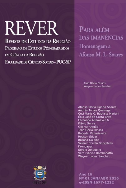 v. 16 n. 1 (2016)Este número presta homenagem ao professor Afonso Maria Ligorio Soares, falecido em 24 de janeiro de 2016. Na função de professor associado do Departamento de Ciência da Religião e de Coordenador do Programa de Estudos Pós-graduados em Ciência da Religião da PUC-SP, Afonso ministrava aulas nos cursos de graduação e pós-graduação, orientava dissertações e teses e coordenava pesquisas na área de Ensino Religioso. Por formação e competência, transitava pelas ciências humanas, pela ciência da religião e pela teologia, superando as imanências epistemológicas que costumam rondar as academias e as confissões religiosas. Exerceu por longos anos a função de editor na Paulinas Editora, onde contribuiu com a divulgação de temáticas referentes à teologia e à ciência da religião, além de dirigir a revista Ciberteologia. Suas publicações e sua dedicação como pesquisador e professor deixaram um legado inestimável para a comunidade científica local e nacional. Os autores que ofereceram as reflexões deste número de REVER são as testemunhas das qualidades intelectuais e humanas de Afonso e os parceiros das buscas intelectuais e das militâncias por ele empreitadas. O Programa de Ciência da Religião da PUCSP e Paulinas são agradecidos pelo dom da vida do grande intelectual e a ele dedicam com carinho esse número especial de REVER.