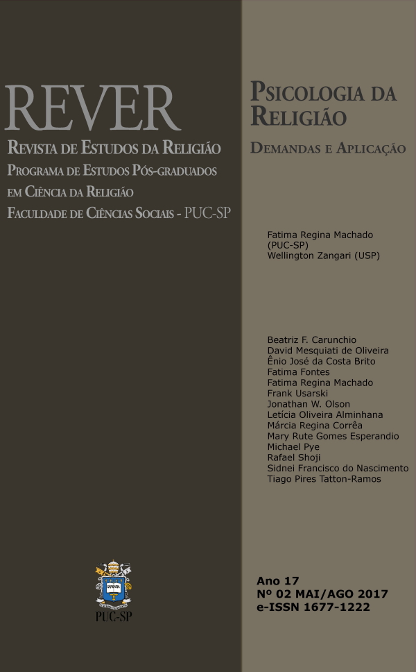 v. 17 n. 1 (2017)Este número da REVER traz uma primeira amostra de contribuições da Psicologia da Religião para a Ciência da Religião. Serão abordadas tendências atuais dessa área de pesquisa, sem descuidar de suas raízes históricas, sejam elas teóricas ou metodológicas.