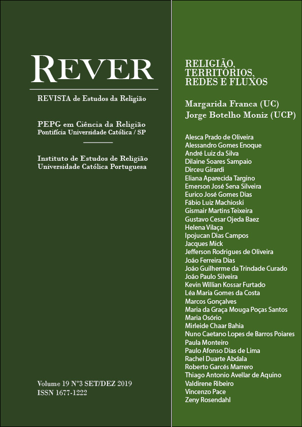 v. 19 n. 3 (2019)A investigação sobre as correlações entre as formas humanas de habitar o espaço e as práticas/representações religiosas tem uma longa tradição nos Estudos de Religião. Na indagação sobre as religiões pré-históricas, no estudo das origens das tradições religiosas ou no mapeamento dos itinerários de disseminação religiosa, a problemática do uso e da apropriação religiosa do espaço emerge incontornavelmente. Os objetos de estudo, neste domínio, dizem respeito tanto à longa duração das culturas como às dinâmicas de mudança social mais recentes. As sociedades contemporâneas têm-se tornado mais diversas, sendo marcadas por uma pluralidade inédita de cosmovisões religiosas. Neste contexto, em diferentes disciplinas, fala-se do fim da territorialidade local compacta, quadro social em que era possível encontrar imediatamente, para cada pessoa, objeto ou acontecimento, uma rede estável de significação, referida a um lugar. As novas gramáticas do território têm um importante impacto na morfologia do campo religioso. -