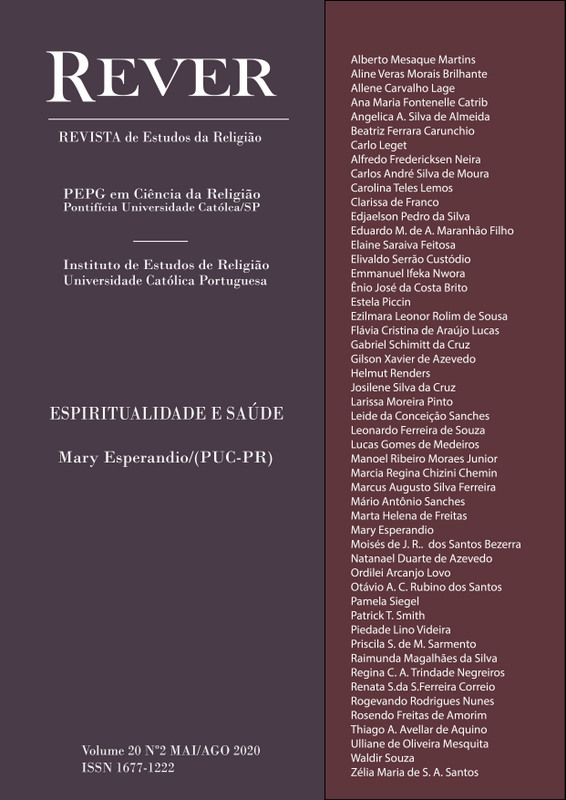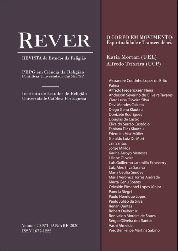 v. 20 n. 1 (2020)O dossiê deste número da REVER acolheu estudos e ensaios sobre o corpo (com particular incidência no tema do corpo em movimento), nas suas práticas e sentidos, como expressão de uma espiritualidade e lugar de abertura à experiência de transcendência. Este interesse de pesquisa cobriu duas direções: a compreensão do corpo em movimento no contexto de vivências espirituais e religiosas; a construção de sentidos espirituais para as práticas performativas e/ou de intensidade física (dança, desporto etc.), enquanto expressão de deslocações do sagrado.