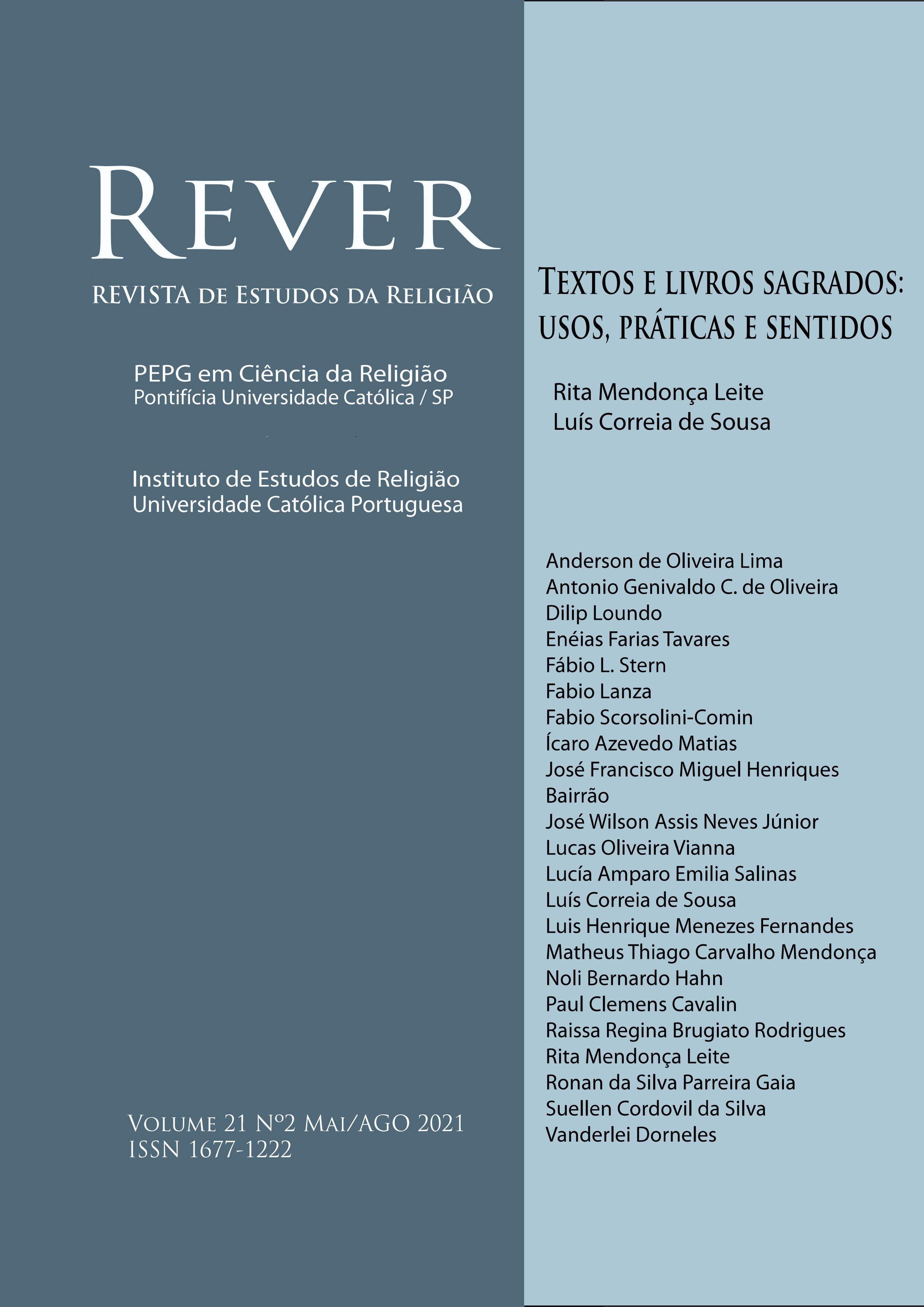 v. 18 n. 1 (2018)O dossier temático constituído para este número da REVER resulta do trabalho exploratório de um grupo de pesquisa, enquadrado na linha de investigação «Performatividades e Estéticas do Religioso», do Centro de Investigação em Teologia e Estudos de Religião (Universidade Católica Portuguesa). Este número inaugura, também, uma parceria com o Instituto de Estudos de Religião (www.ier.ucp.pt) da mesma Universidade, na coedição da REVER, cumprindo o objetivo de tornar este projeto da PUC de São Paulo mais diversificado no espaço lusófono e na cena internacional. -