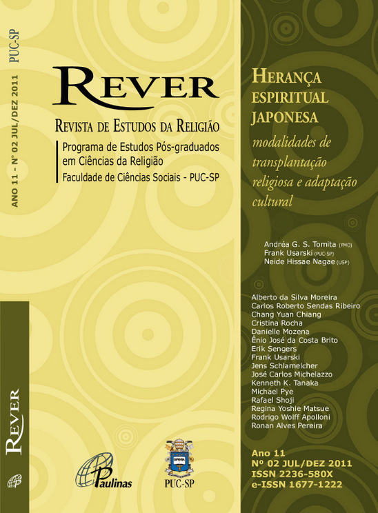 v. 11 n. 2 (2011)Este número traz na sessão temática sete artigos que discutem as modalidades de transplantação religiosa e adaptação cultural da herança espiritual japonesa nos países que acolheram seus imigrantes, principalmente no Brasil. As reflexões levam em conta, além de considerações históricas, aspectos relacionados à dinâmica da “exportação” de religiões japonesas para outros países, problemas relacionados ao processo de imigração japonesa bem como teoremas e conceitos como os do “hibridismo”, do “sincretismo” e, sobretudo, da “transplantação religiosa”.
