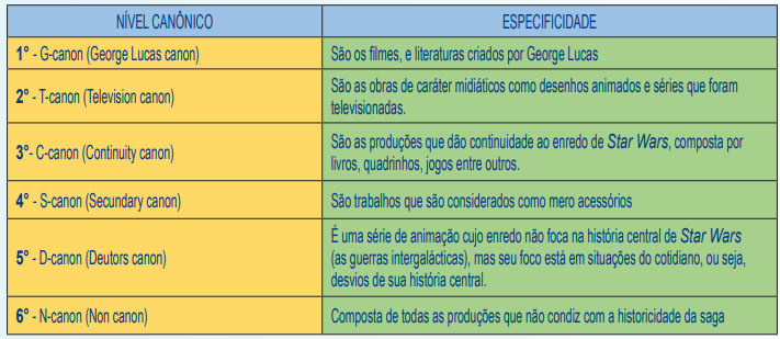 Conforme foram surgindo mais e mais produções com o topônimo Star Wars, foi preciso criar um padrão canônico de regulamentação cuja sigla UESW (Universo Expandido de Star Wars), George Lucas está diretamente envolvido, permitindo que os editores da Lucasfilm Ltd. trabalhem em concomitância com autores de outras editoras, possuindo um selo de aprovação desses novos projetos que mesmo recebendo a devida aprovação da UESW, não quer dizer que os mesmos sejam considerados obras canonizadas, a não ser que essas histórias possam fazer parte das historiografias cinematográficas, que compõe essa saga. (Hidalgo, 2012, p. 8).