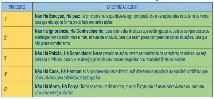 Quadro 2: Os Preceitos e as diretrizes do Código Jedi.