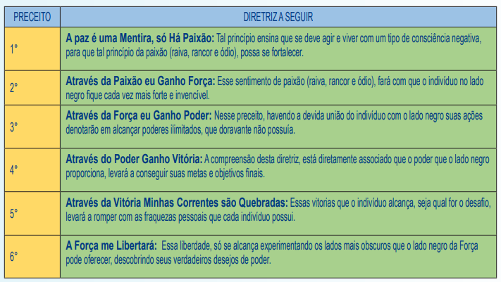 Quadro 3: Os Preceitos e as diretrizes do Código Sith.